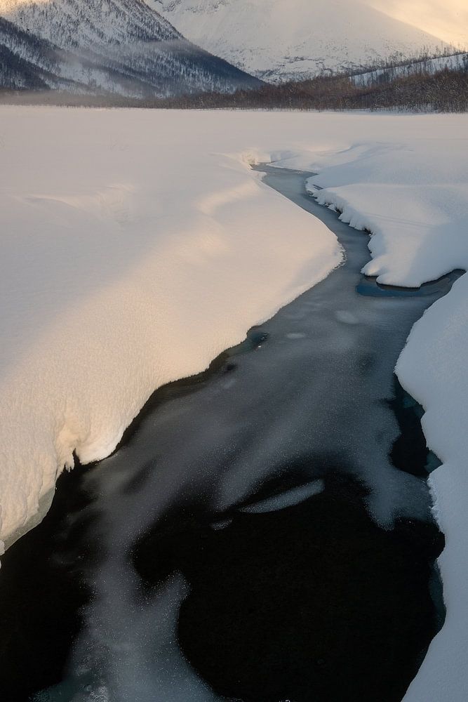 Es hatte mehrere Tage lang getaut, im Vordergrund ist bereits ein Teil des Flusses zu sehen.