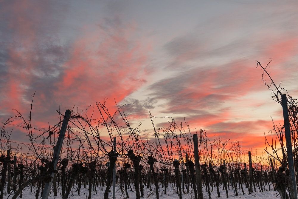 Sonnenuntergang im Weingarten