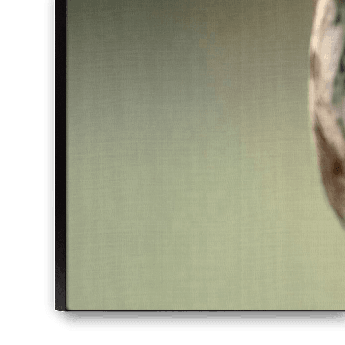 "Wise Gaze" zeigt eine intime Nahaufnahme einer Eule, deren große, durchdringende Augen den Betrachter direkt ansehen. Das detaillierte Gefieder und die Schärfe der Augen erwecken die Majestät und Mystik dieses nachtaktiven Vogels zum Leben. Der weiche, dunstige Hintergrund verstärkt die Konzentration auf die Eule und hebt ihr ausdrucksstarkes Gesicht und ihre anmutigen Details hervor. Dieses Porträt fängt die Essenz von Weisheit und Neugier ein und ist perfekt für Liebhaber von Wildtieren und natürlicher Schönheit, die ihren Innenräumen ein kraftvolles und beruhigendes Element hinzufügen möchten.