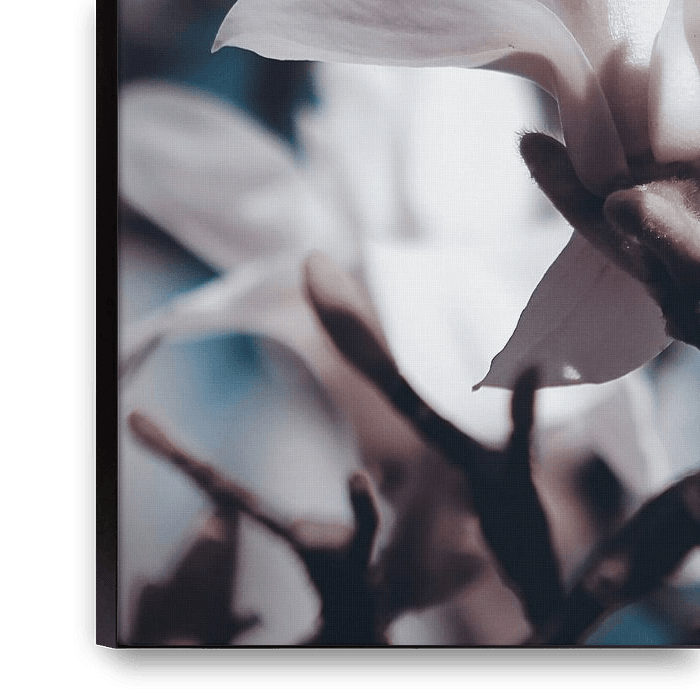 Ein Foto von einem weißen Magnolien blühen, digitale Bildbearbeitung in einem weichen Schatten (pink-türkis-Sepia).