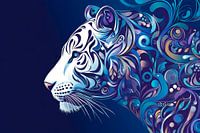 Ein majestätischer weißer Tiger präsentiert sich in lebhaften Blautönen, die in filigranen Mustern fließen. Seine hypnotisierenden Augen ziehen den Betrachter in eine faszinierende Welt. Dieses Kunstwerk verleiht jeder Wand im Wohnzimmer eine dynamische Eleganz und bringt eine beruhigende, aber kraftvolle Energie in den Raum.