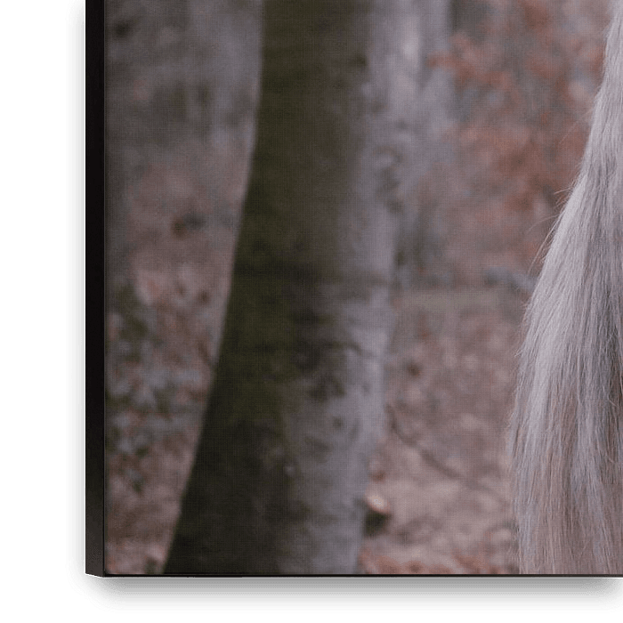 Bestelle das Foto Weißes Pferd im Wald von Marieke De Boer als Reproduktion auf Leinwand, Alu-Dibond, als Poster, Fototapete oder Acrylglasbild.