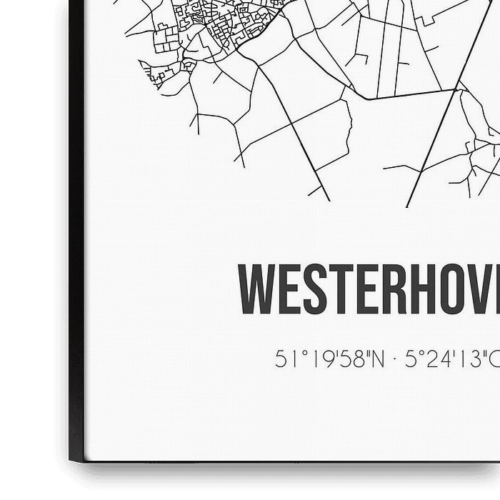 Bestelle dieses abstrakte Wandbild Westerhoven (Noord-Brabant) | Karte | Schwarz und Weiß von Ortsdrucke als Reproduktion auf Leinwand, Alu-Dibond, als Poster, Fototapete oder Acrylglasbild.