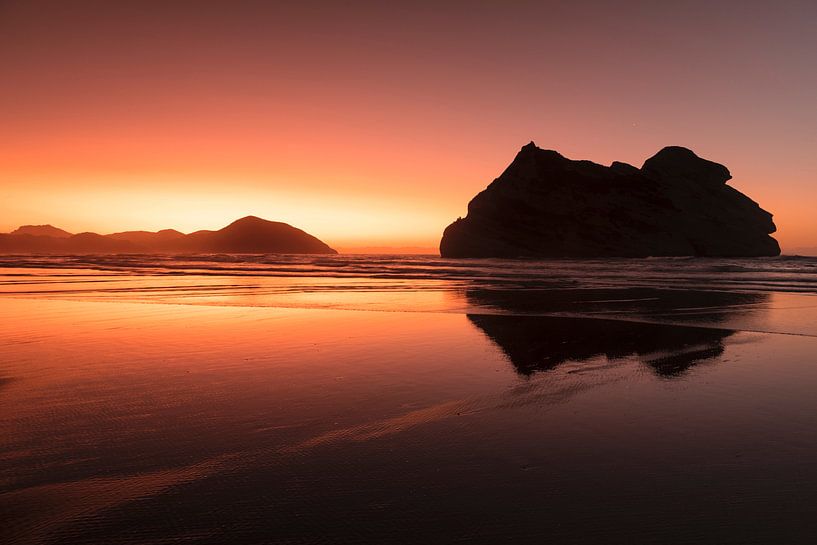 Wharariki Beach bei Sonnenuntergang, Golden Bay, Südinsel, Neuseeland,