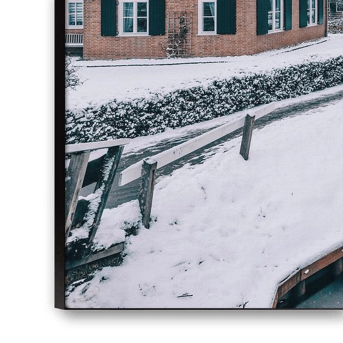 Das Dorf Giethoorn mit den Kanälen mit Schnee an einem kalten, aber schönen ruhigen Wintertag. Giethoorn ist ein Dorf in Overijssel in den Niederlanden und berühmt für seine Grachten.
