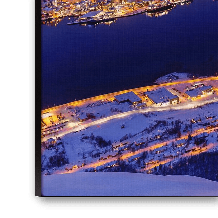 Tromsø ist die größte Stadt in Nordnorwegen. Die Stadt liegt zum größten Teil auf der gleichnamigen Insel. Dieses Bild wurde im Winter vom Aussichtspunkt auf dem Berg an der Bergstation der Seilbahn aus aufgenommen.