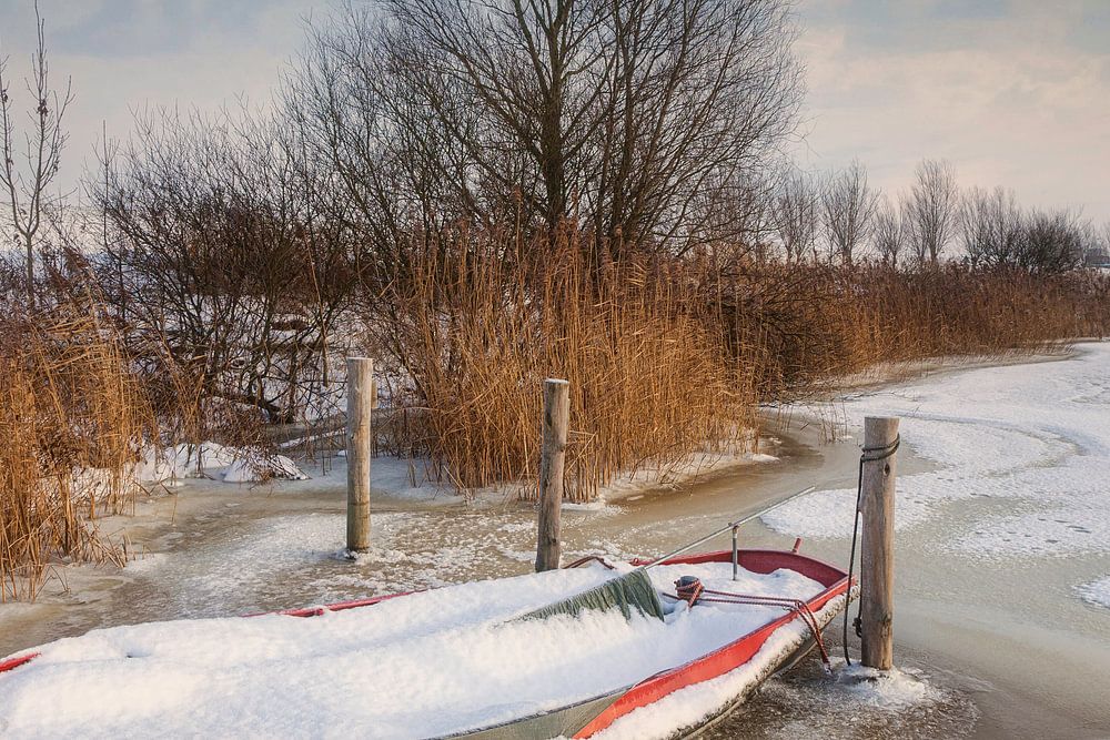 Winterlandschaft mit Ruderboot im Eis