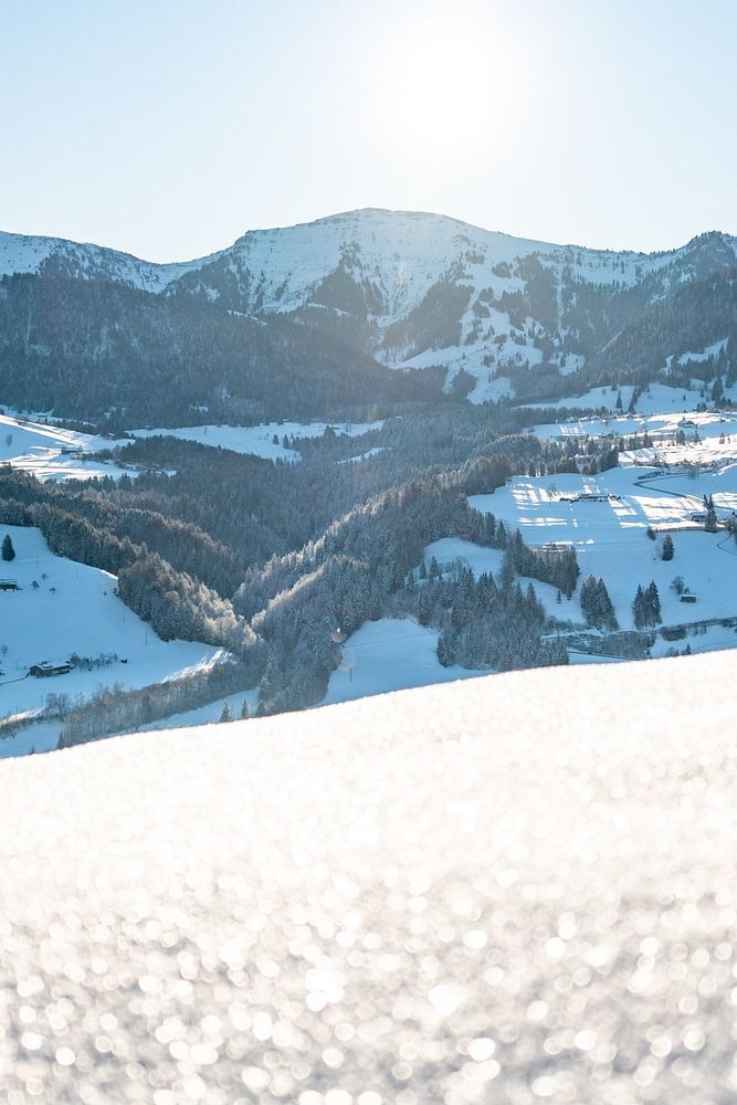 Winterlicher Blick von Oberstaufen auf den Hochgrat, Steibis