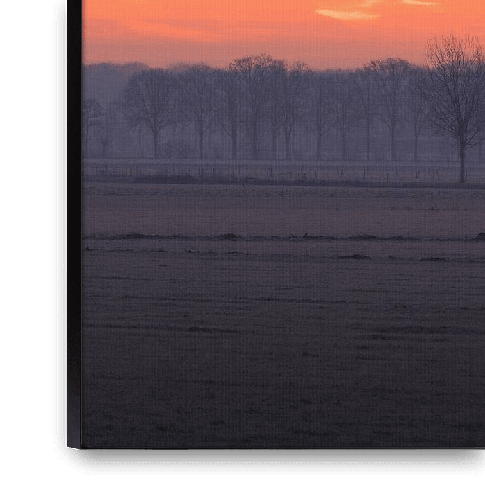 Bestelle dieses Landschafts-Wandbild Winterlicher Sonnenaufgang über dem Drunen Polder von Zwoele Plaatjes als Reproduktion auf Leinwand, Alu-Dibond, als Poster, Fototapete oder Acrylglasbild.