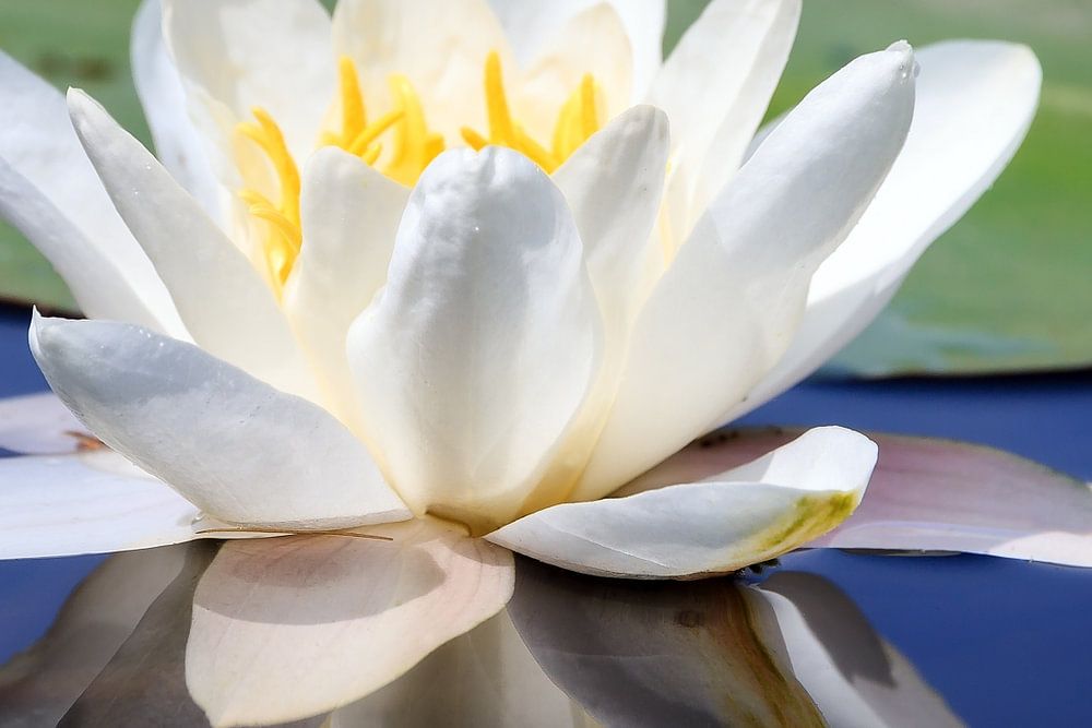 Prachtige close up macro opname van de witte waterlelie (Nymphaea alba) in het water van rivier de Angstel in Baambrugge onder Amsterdam