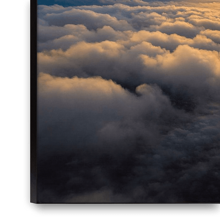Traumhafter Sonnenuntergang bei einem Flug zwischen zwei Wolkenschichten