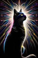 Strahlende schwarze Katze mit leuchtenden Farben
