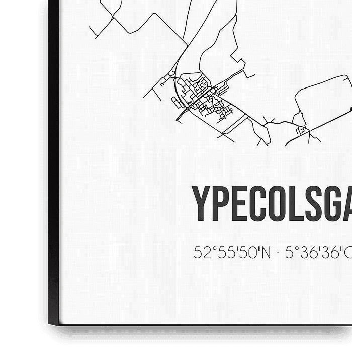 Bestelle dieses abstrakte Wandbild Ypecolsga (Fryslan) | Karte | Schwarz und Weiß von Ortsdrucke als Reproduktion auf Leinwand, Alu-Dibond, als Poster, Fototapete oder Acrylglasbild.