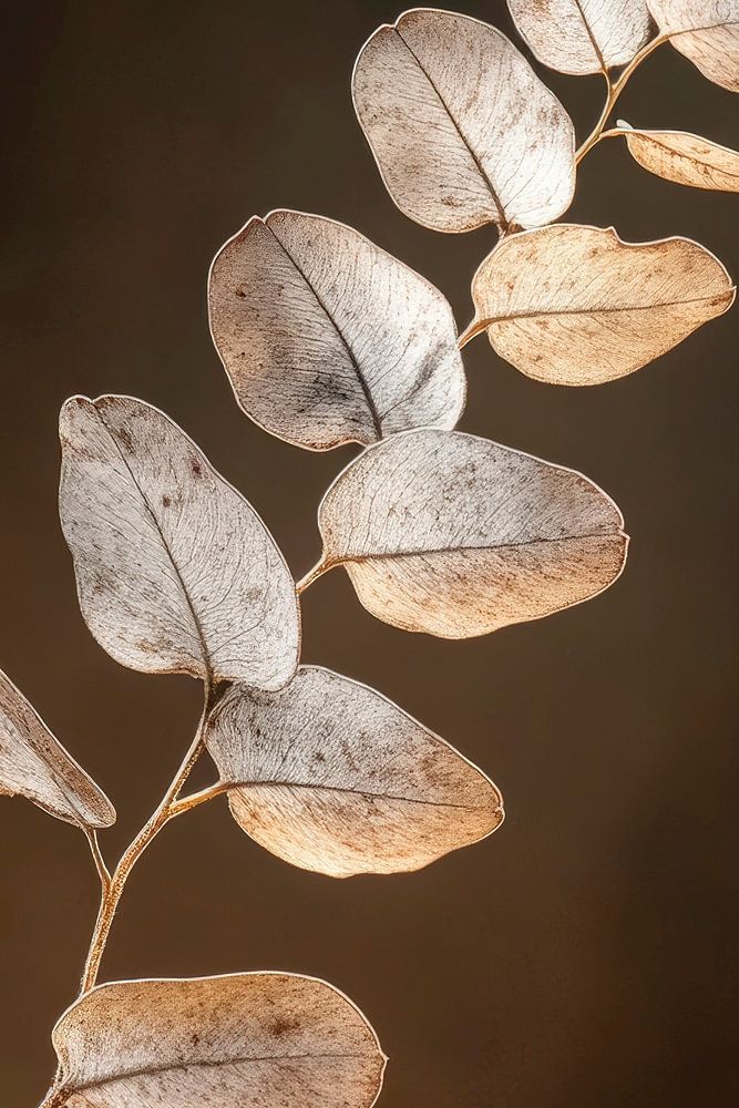 Zarte Blätter, sanft beleuchtet, wirken fast wie schimmernde Fragmente der Natur. Ihr filigranes Design und die harmonische Farbgebung schaffen eine ruhige Atmosphäre. Dieses Kunstwerk eignet sich perfekt für das Schlafzimmer, wo es eine entspannende, botanische Note verleiht und zum Träumen einlädt.