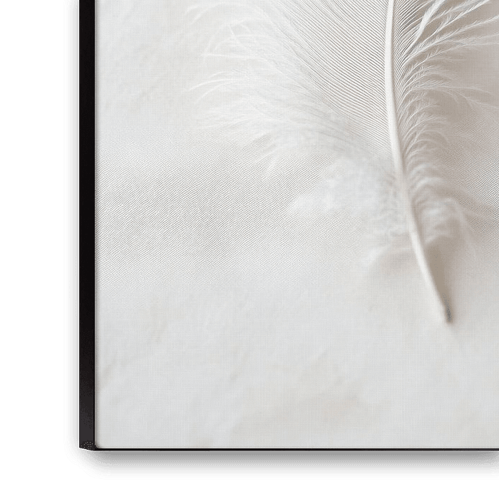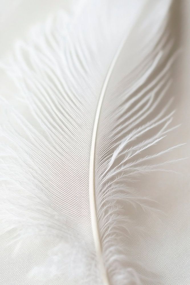 Sanft und anmutig liegt sie da – eine schneeweiße Feder, deren filigrane Struktur an einen zarten Hauch von Wolken und Luftschlösser erinnert. Ihre feinen Fasern tanzen im Licht und verleihen dem einfachen Motiv eine fast magische Leichtigkeit, die von einem stillen, träumerischen Wesen zeugt. Ein Moment des Friedens in der Stille der Natur.