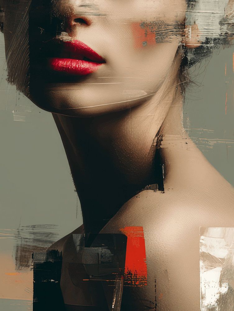 Zeitgenössisches abstraktes Porträt in warmen Farben. Ein besonderer Blickfang für Ihr Interieur! Wählen Sie das Format und das Material für dieses Werk und machen Sie es zu Ihrem eigenen.