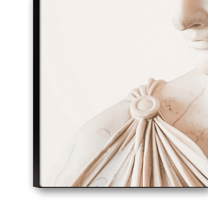 Diese Skulptur bringt die klassische Kunst in die Gegenwart. Der ruhige Blick und die subtilen Falten ihrer Kleidung verleihen ihr ein elegantes und ruhiges Aussehen. Die detaillierten Haare mit dem Stirnband unterstreichen die zeitlose Ausstrahlung. Dieser Druck fügt sich nahtlos in minimalistische oder zeitgenössische Interieurs ein und ist perfekt für die Generation der Dreißigjährigen, die Kunst mit einer Geschichte und einem Hauch von Geschichte zu schätzen weiß.