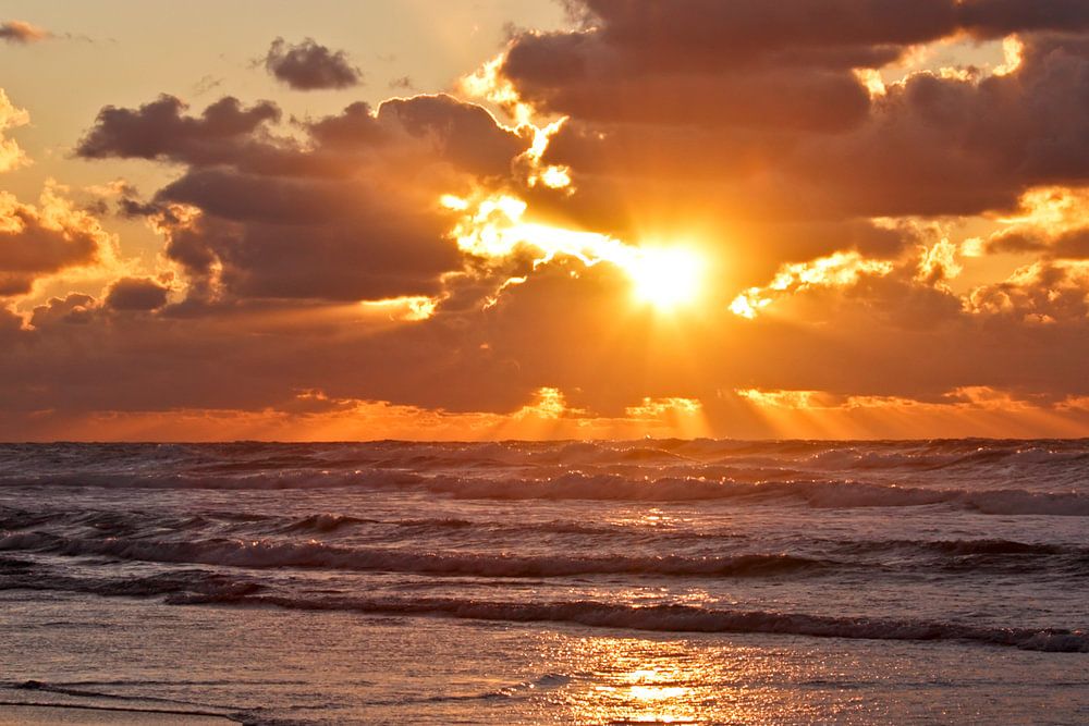 Zonsondergang aan de Noordzee in Nederland