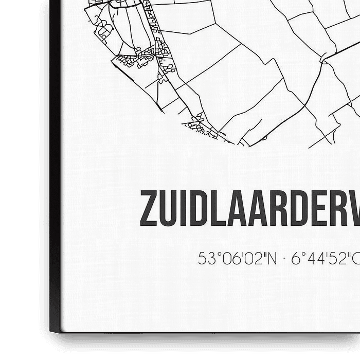 Bestelle dieses abstrakte Wandbild Zuidlaarderveen (Drenthe) | Karte | Schwarz und Weiß von Ortsdrucke als Reproduktion auf Leinwand, Alu-Dibond, als Poster, Fototapete oder Acrylglasbild.