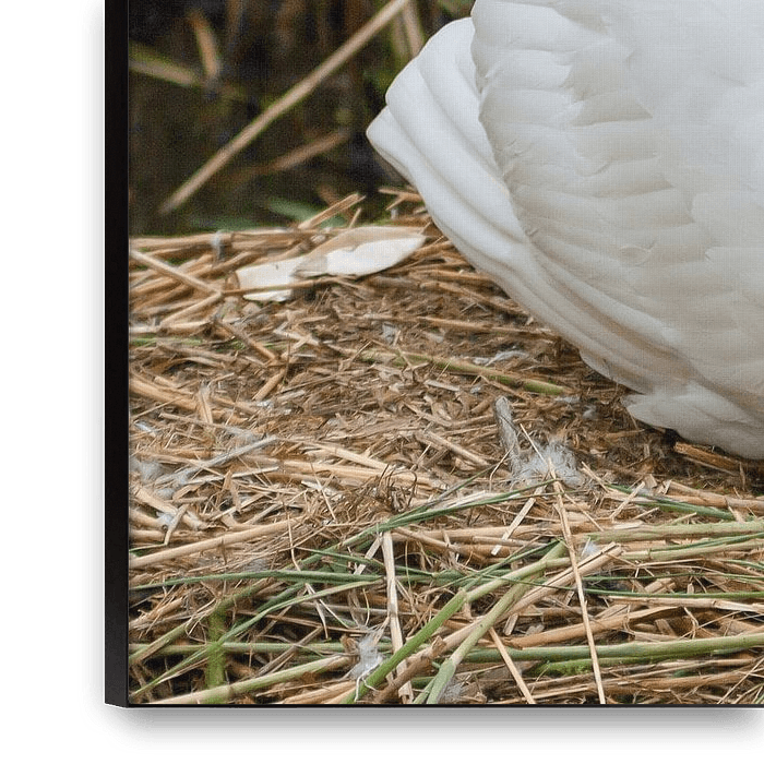 In deze opname verbergt de zwaan haar kuiken door deze met de vleugels te bedekken.
