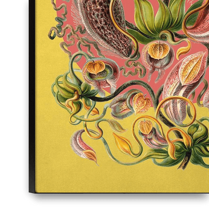 Holen Sie sich mit dieser wunderschönen botanischen Illustration fleischfressender Pflanzen auf einem farbenfrohen und fröhlichen Hintergrund eine einzigartige Kombination aus…