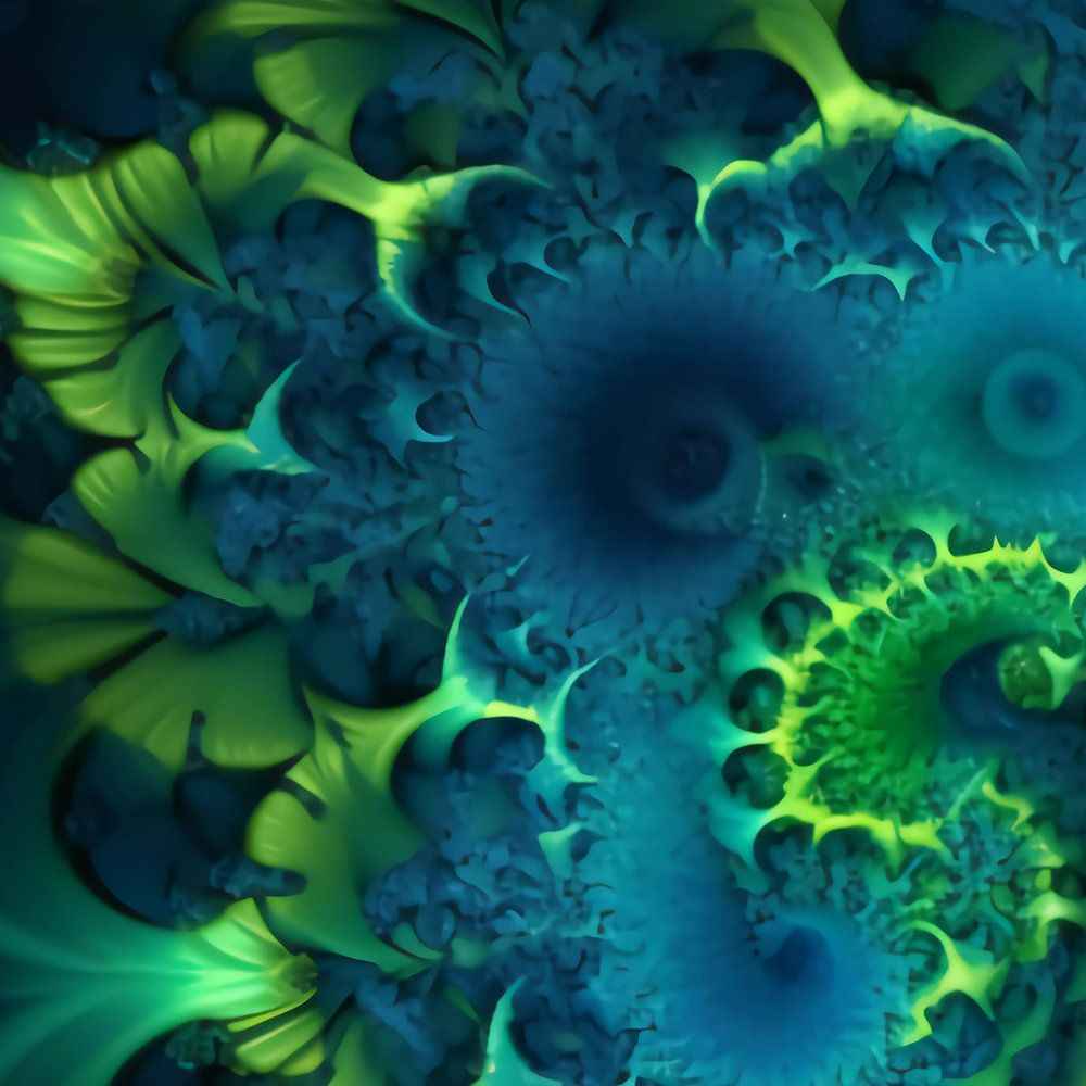 Blue-Green Fractals ist ein atemberaubendes digitales Kunstwerk, das die komplizierte Schönheit von Fraktalen in Blautönen zeigt. Das Kunstwerk besteht aus einer Reihe von geometrischen Mustern, die eine hypnotisierende Wirkung auf den Betrachter erzeugen. Jedes einzelne Muster besteht aus kleineren Formen, die sich wiederholen und in der Größe skalieren, wodurch ein kompliziertes Design entsteht, das sowohl komplex als auch optisch ansprechend ist.