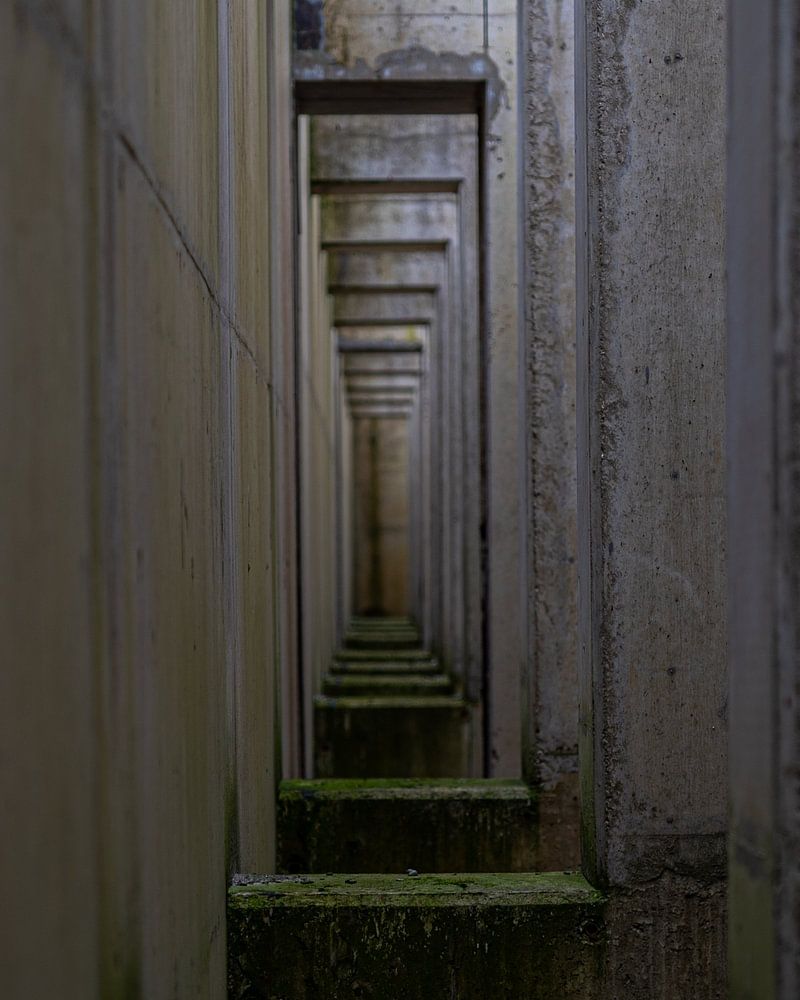Am Waterloopbos hat man schöne Ausblicke durch kleine Betonmauern . es ist ein Vergnügen, dort als Fotograf spazieren zu gehen . so habe ich diesen Ausblick im Leben gesehen wie tief der Tunnel auch ist, es gibt immer einen Ausweg .