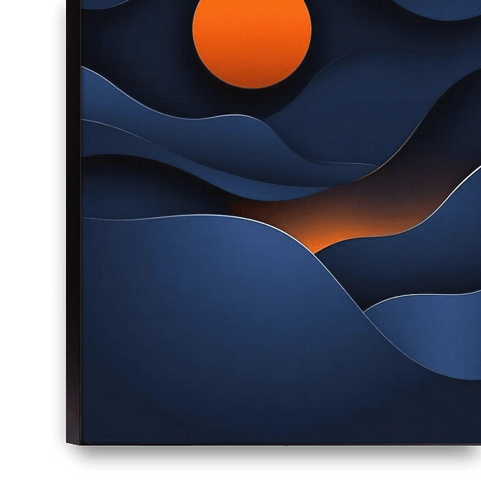 Ihre gewählte Kunst auf Leinwand, gespannt in einem Aluminiumrahmen. Schnell und einfach austauschbar für eine frische Ausstrahlung und ganz nach Ihren Wünschen.