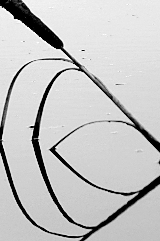 Im Herbst und Winter biegt sich das verbliebene Schilf zum Wasser hin, so dass man manchmal nicht erkennen kann, wo das Schilf endet und die Spiegelung beginnt.