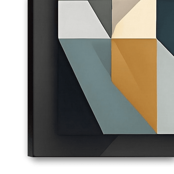 Die gesamte Komposition erzeugt ein Gefühl von Dynamik und Bewegung. Die geometrischen Formen sind so angeordnet, dass sie einen Fluss und Rhythmus erzeugen, und die lebhaften Farben schaffen ein Gefühl von Aufregung und Energie.
