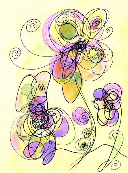 Spiralen Kringel Kreise werden attraktiv in Szene gesetzt. Linien in Kringelform zeichnen witzige Blumen.