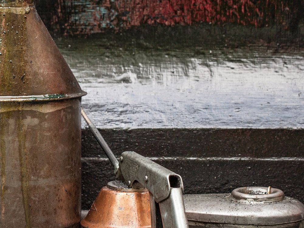 Alte Krüge aus einer vergangenen Zeit, um die Lokomotive so zu schmieren, dass sie geölte Fahrten machen kann. Heute hauptsächlich zum Transport der Touristen. aber vergessen Sie nicht, dieses Erbe in guter Form zu behalten.