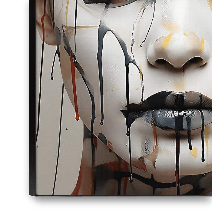 Bestelle dieses abstrakte Wandbild schwarz & weiße Frau mit Blumenspritzer von PixelPrestige als Reproduktion auf Leinwand, Alu-Dibond, als Poster, Fototapete oder Acrylglasbild.