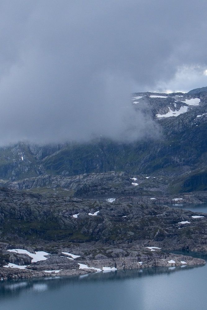 Stimmungsvolle Landschaft mit Bergen und See in Südnorwegen