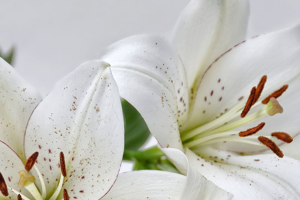 feminin und elegant, weiße duftende anmutige Schönheiten. Lilienblüten in ganzer Pracht