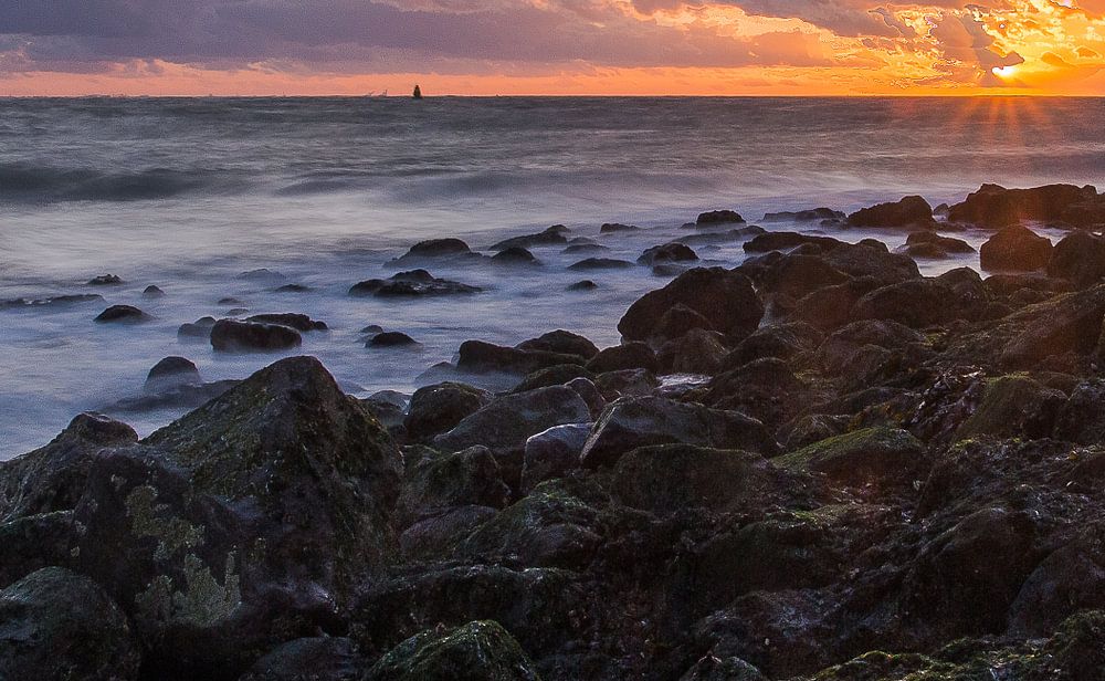 Zonsondergang bij het windorgel in Vlissingen op een nazomerse dag in september.
