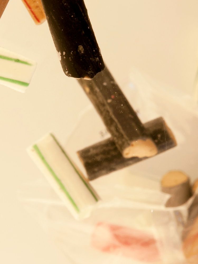 zwevende oud-hollandse snoepjes op een witte achtergrond