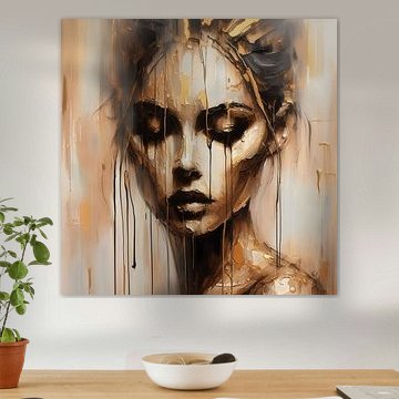 Portrait Ölgemälde Schwarz Weiß Grau Braun