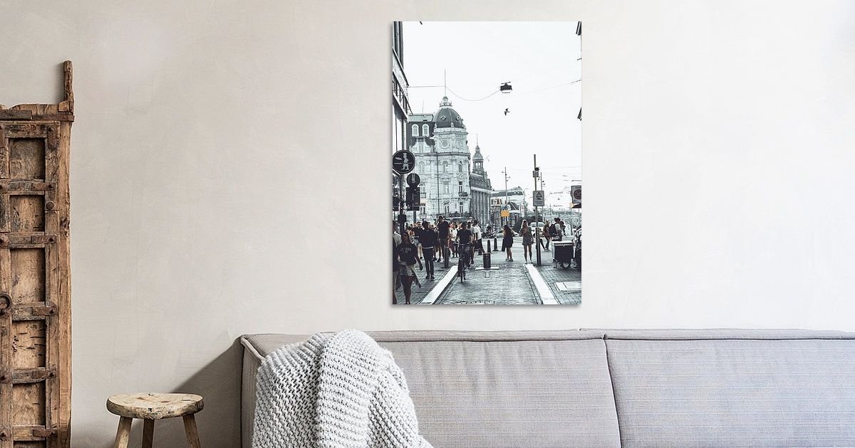Leinwände, Aluminium, Acrylglas und gerahmte Werke werden sicher in Luftpolsterfolie und Karton verpackt. Tapeten und Poster werden in stabilen Röhren verschickt.