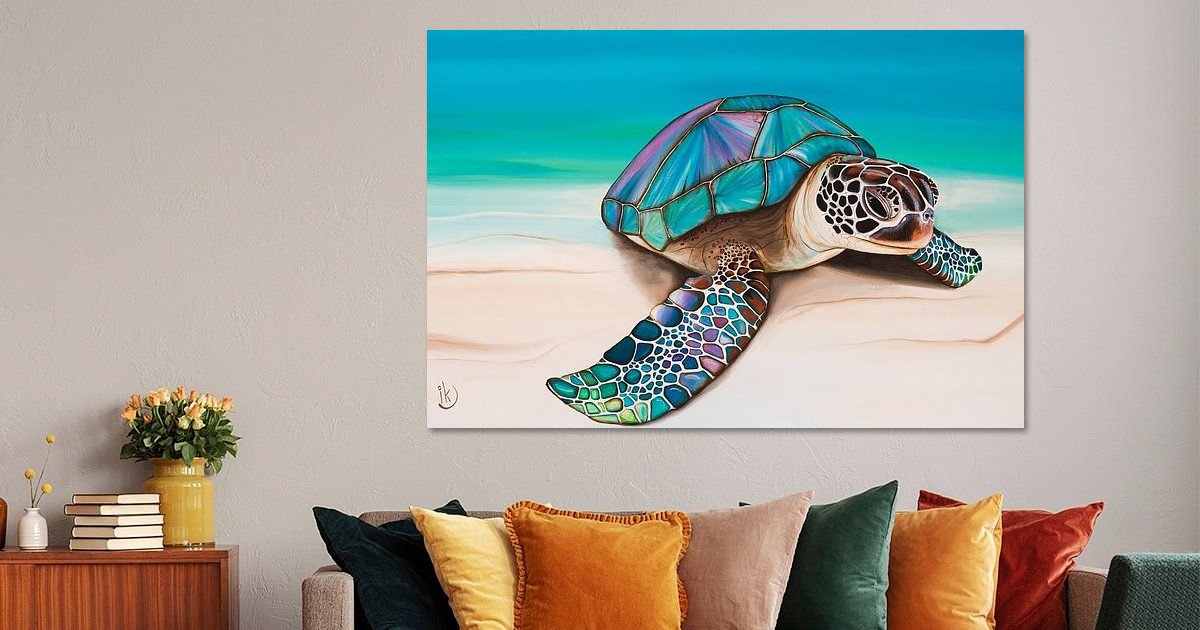Leinwände, Aluminium, Acrylglas und gerahmte Werke werden sicher in Luftpolsterfolie und Karton verpackt. Tapeten und Poster werden in stabilen Röhren verschickt.