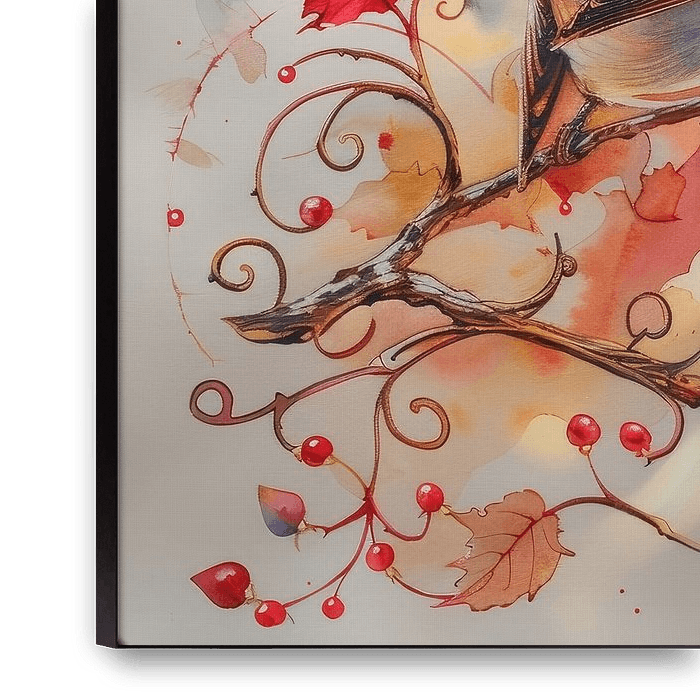 Bestelle dieses Blumen-Wandbild Aquarell eines Vogels von Gelissen Artworks als Reproduktion auf Leinwand, Alu-Dibond, als Poster, Fototapete oder Acrylglasbild.