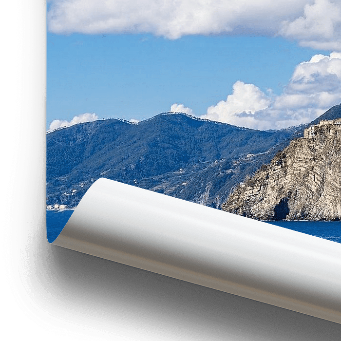 Bestelle das Foto Blick auf Corniglia an der Mittelmeerküste in Italien von Rico Ködder als Reproduktion auf Leinwand, Alu-Dibond, als Poster, Fototapete oder Acrylglasbild.