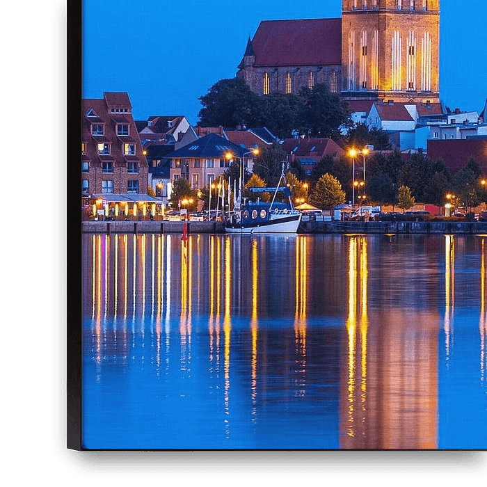 Bestelle das Foto Blick über die Warnow auf die Hansestadt Rostock von Rico Ködder als Reproduktion auf Leinwand, Alu-Dibond, als Poster, Fototapete oder Acrylglasbild.