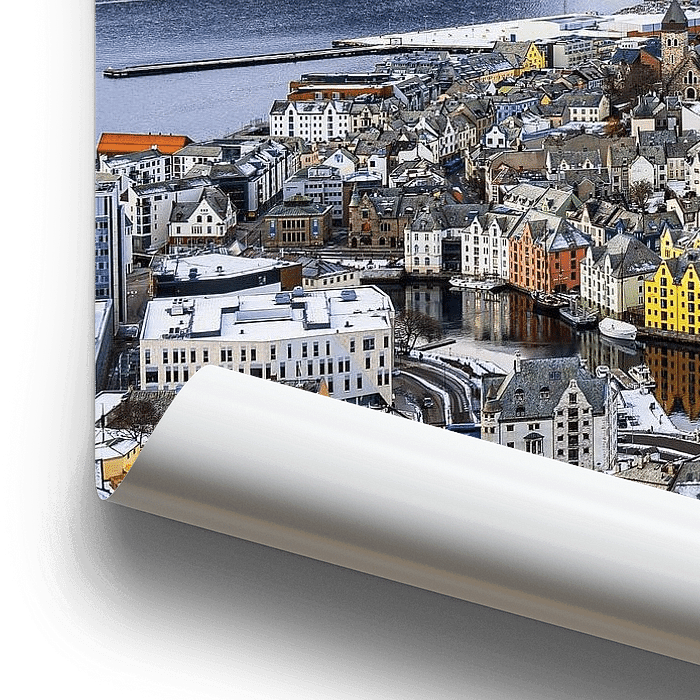 Bestelle das Foto Blick vom Hausberg Aksla auf die Stadt Ålesund in Norwegen von Rico Ködder als Reproduktion auf Leinwand, Alu-Dibond, als Poster, Fototapete oder Acrylglasbild.
