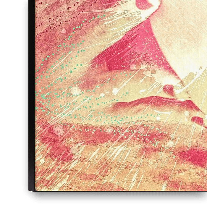 Ihre gewählte Kunst auf Leinwand, gespannt in einem Aluminiumrahmen. Schnell und einfach austauschbar für eine frische Ausstrahlung und ganz nach Ihren Wünschen.