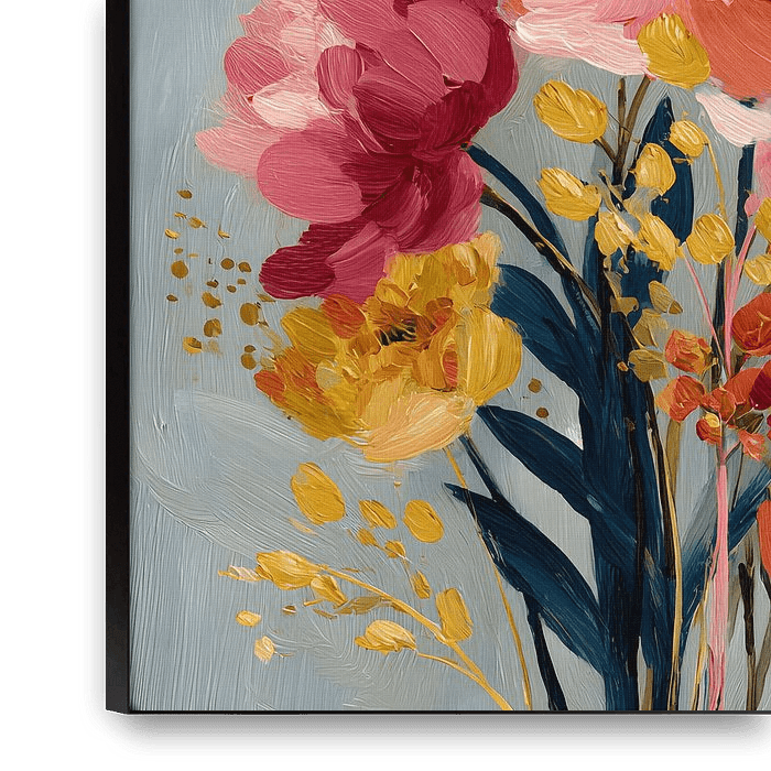 Ihre gewählte Kunst auf Leinwand, gespannt in einem Aluminiumrahmen. Schnell und einfach austauschbar für eine frische Ausstrahlung und ganz nach Ihren Wünschen.