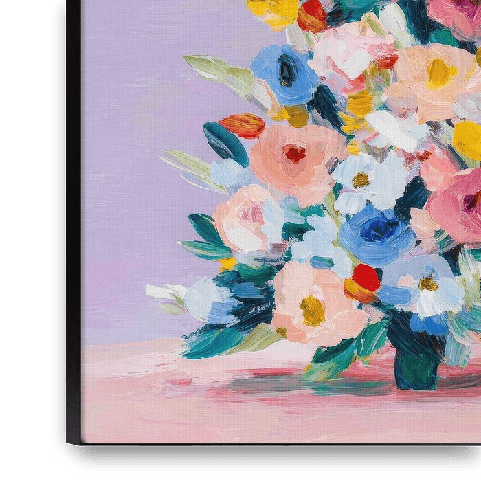 Bestelle dieses Blumen-Wandbild Floraler Weihnachtsbaum in sanften Pastelltönen auf fliederfarbenem Hintergrund von But First Framing als Reproduktion auf Leinwand, Alu-Dibond, als Poster, Fototapete oder Acrylglasbild.