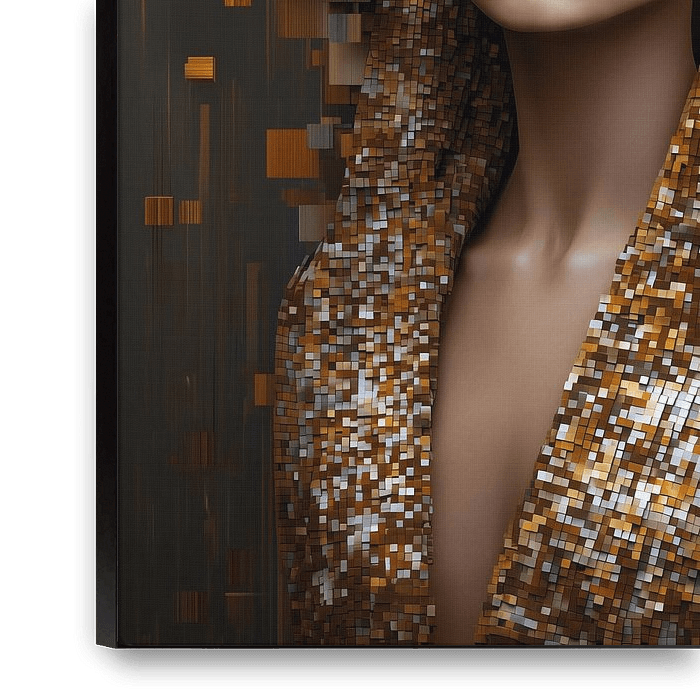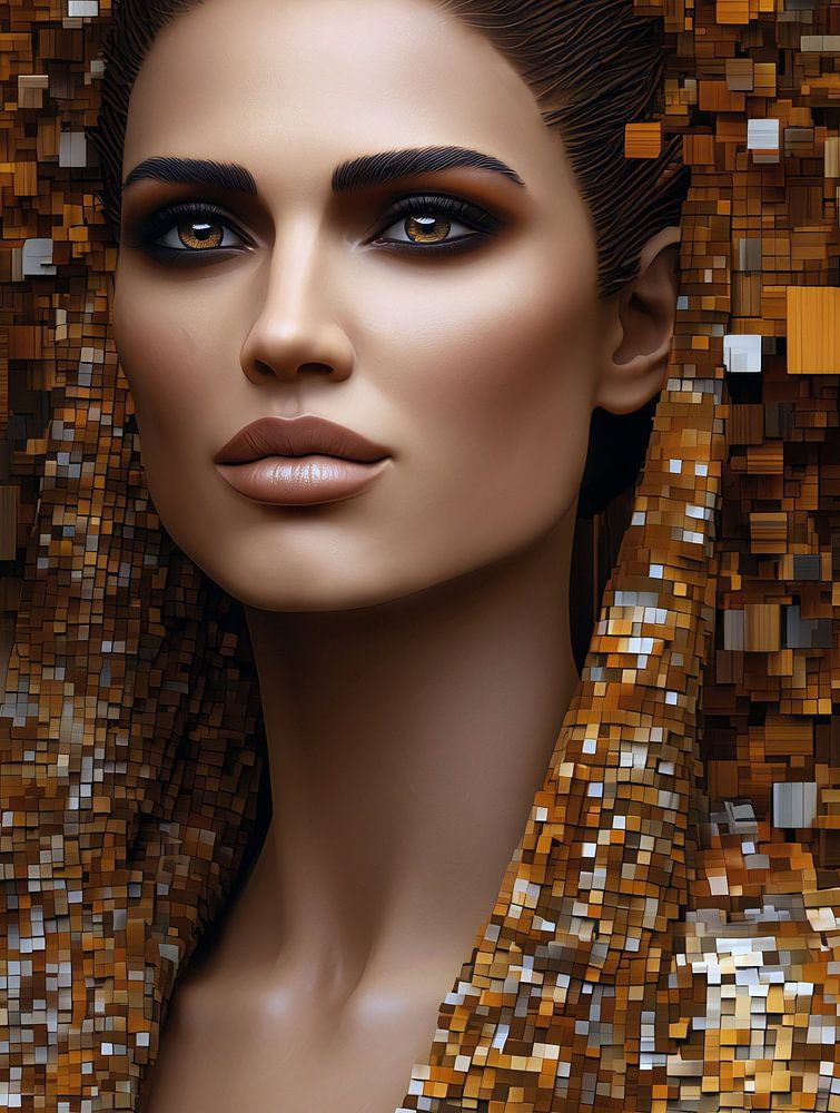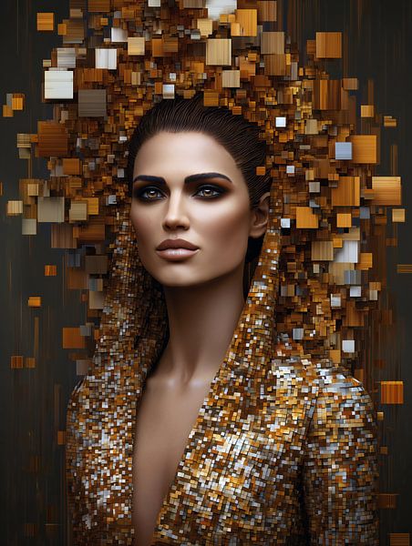 Extravagant ausdrucksstarkes Porträt einer Frau in Braun- und Goldtönen