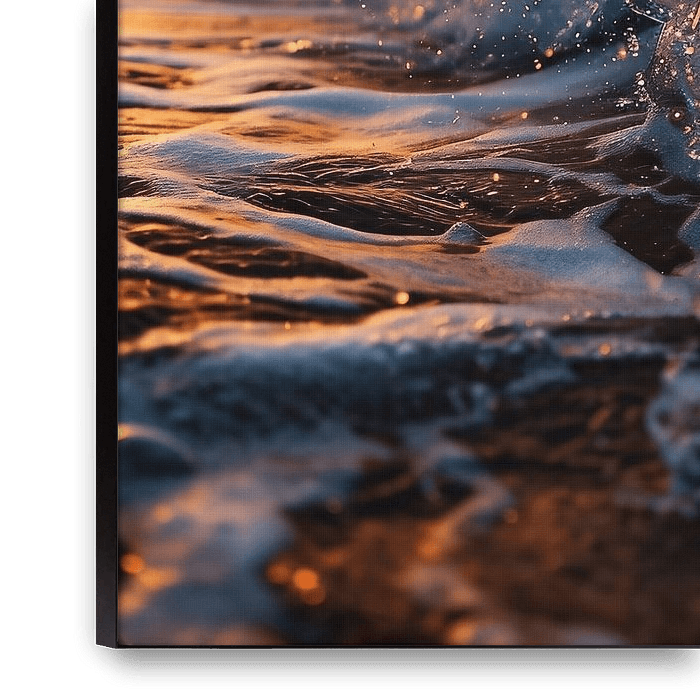 Bestelle dieses Landschafts-Wandbild Goldenes Licht über den Wellen von fernlichtsicht als Reproduktion auf Leinwand, Alu-Dibond, als Poster, Fototapete oder Acrylglasbild.