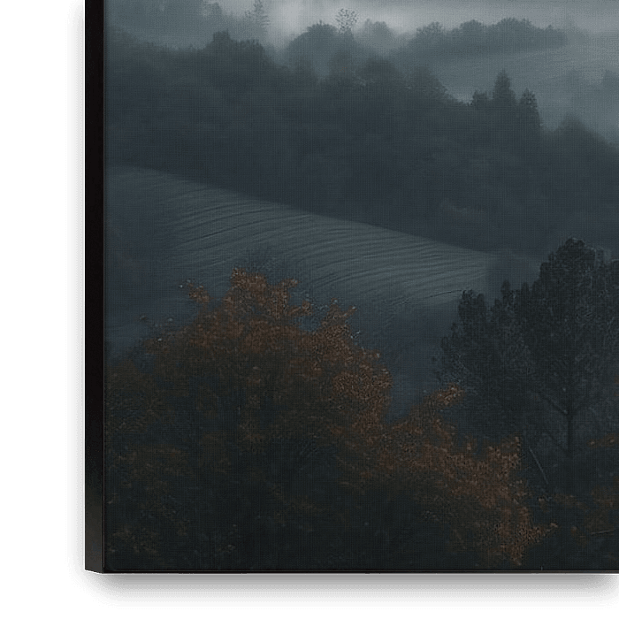 Bestelle dieses Landschafts-Wandbild Herbstnebel in Morgendämmerung von fernlichtsicht als Reproduktion auf Leinwand, Alu-Dibond, als Poster, Fototapete oder Acrylglasbild.